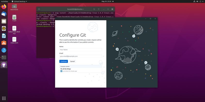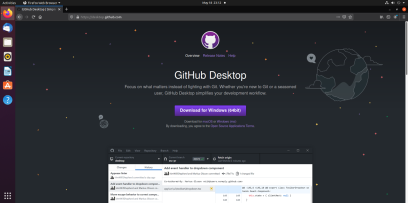 마지막으로 리눅스에 설치할 소프트웨어는 깃허브 데스크탑이다. 아톰을 설치한 이후 웹 개발이 노트북에서도 가능해졌으므로, 코드파일을 효율적으로 주고받기 위해 깃허브 데스크탑을 설치하기로 하였다.