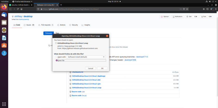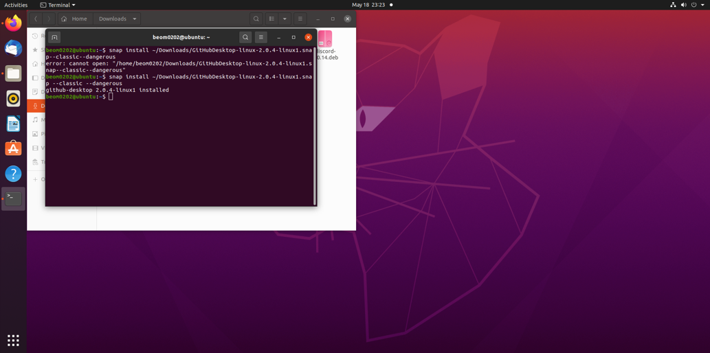 snap install ~/Downloads/GitHubDesktop-linux-2.0.4-linux1.snap –classic –dangerous