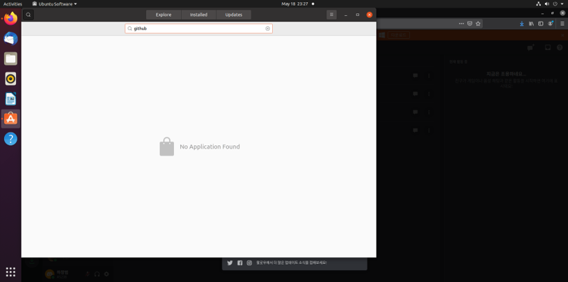 깃허브 데스크탑 홈페이지에는 없지만 혹시 소프트웨어 센터에서는 지원하고 있나 싶어 찾아보았다. 역시 존재하지 않았다. 왜 공식 홈페이지에서 리눅스 버전의 깃허브 데스크탑을 배포하지 않는지는 의문이다.